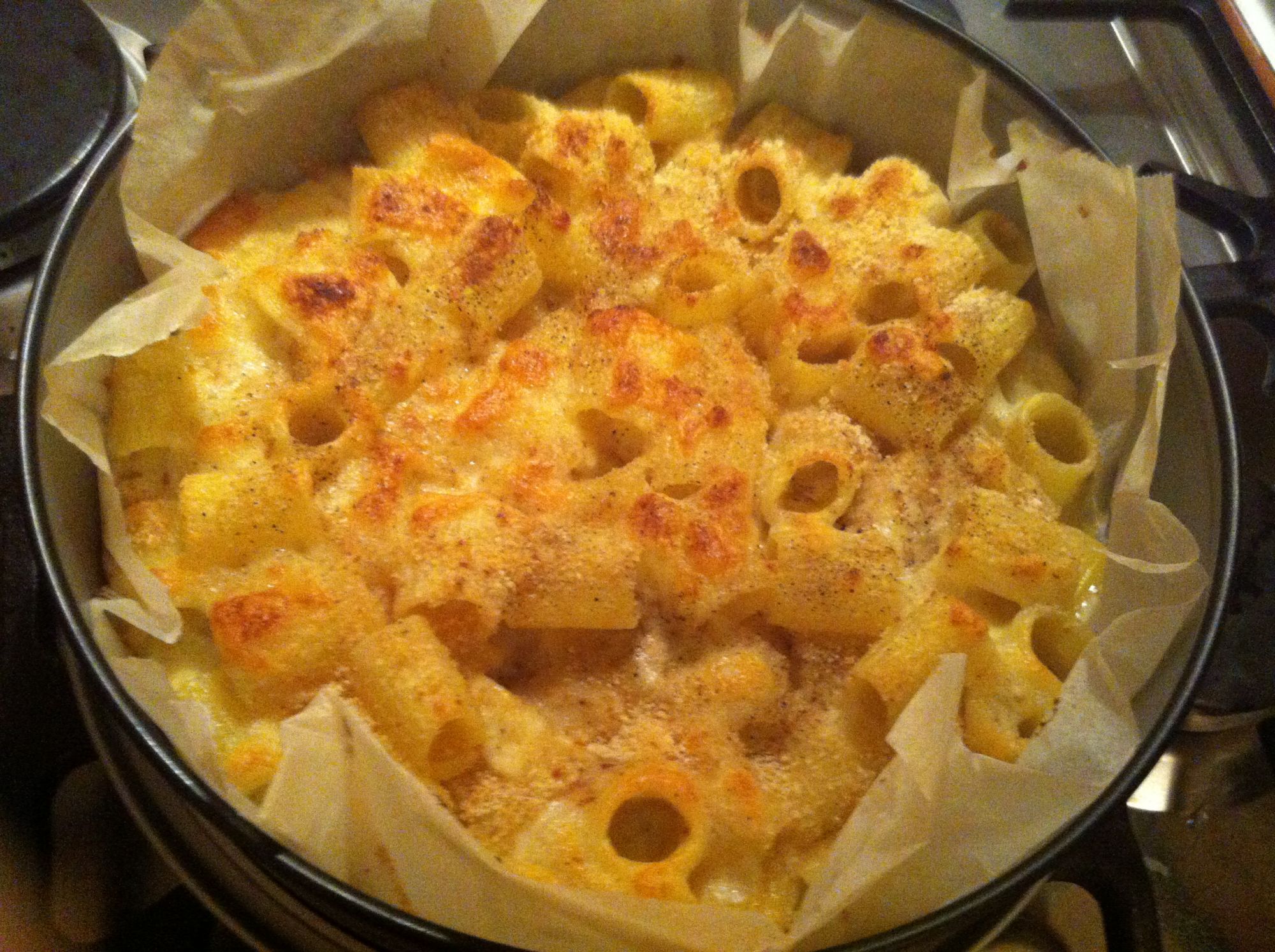3 Tritate grossolanamente i gherigli e unitene meta al timballo. Mettete lo stampo in forno gia caldo a 180° per 15 minuti circa. Togliete dal forno, completate con i gherigli rimasti, coprite e lasciate riposare per 5 minuti prima di servire.