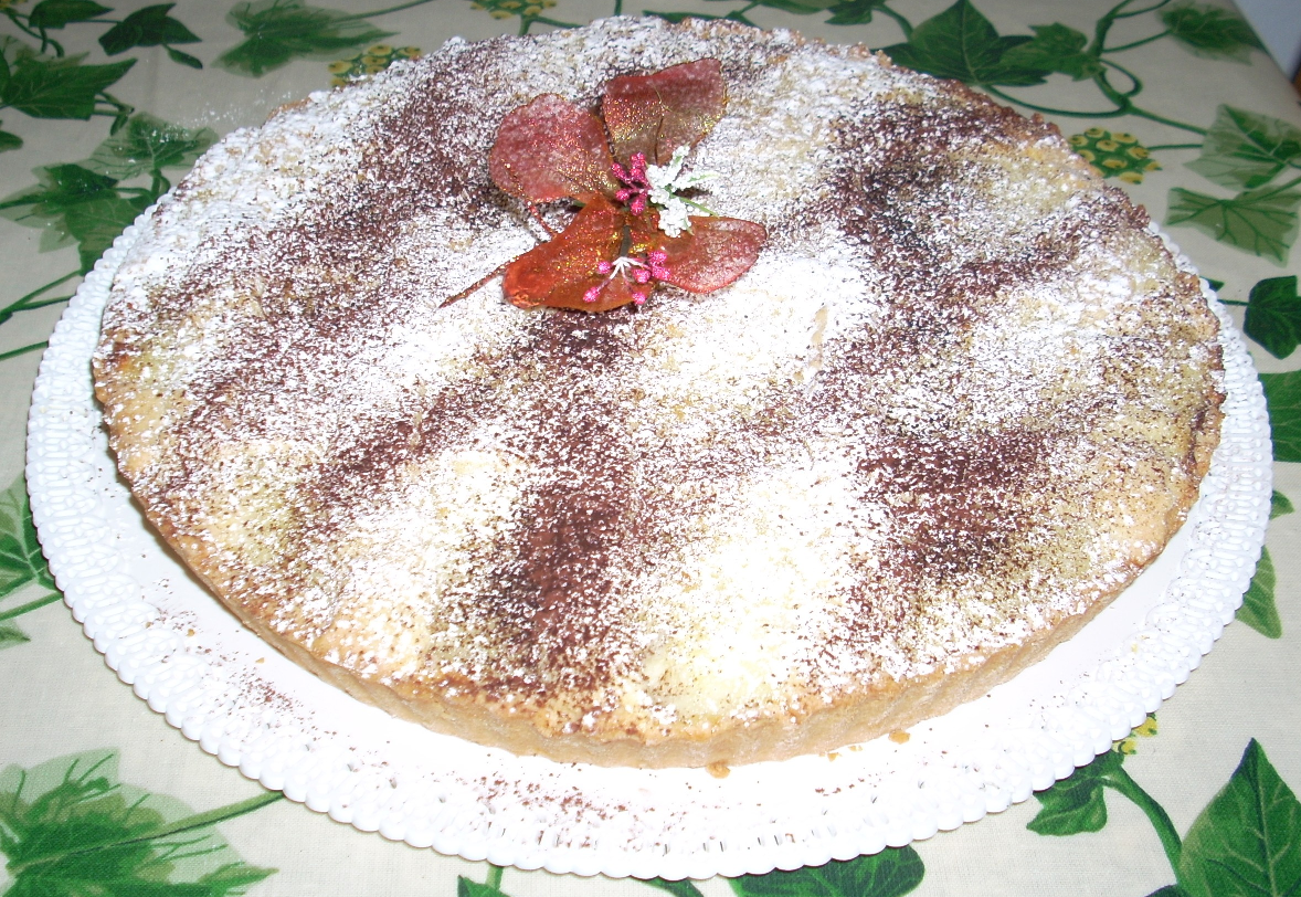 cospargere il fondo della torta con del cacao amaro e versarci sopra la crema di cocco, coprire con le strisce decorative e cuocere in forno caldo a 180 gradi per 45 minuti.