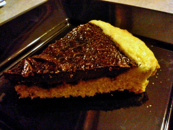 Stendere la frolla direttamente nella tortiera, aiutandovi con le mani, lasciando un bordo alto un centimetro. Successivamente versarvi la crema liquida e coprire la tortiera con la stagnola.
