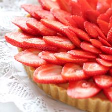 Tagliare le fragole e posizionarle a piacere sulla crostata.