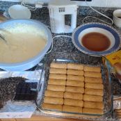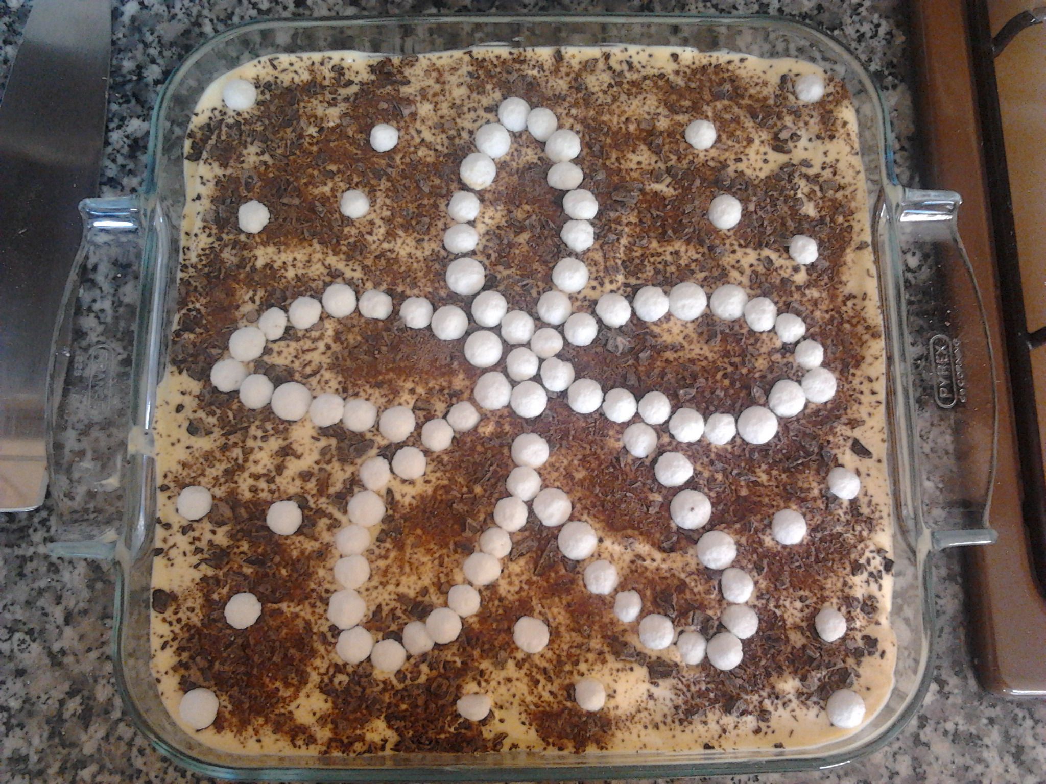 Versare la tazza di caffè in un piatto e aggiungere una tazza di Marsala. Intingere i Pavesini, versare uno strato di crema e spolverizzare con un pò di scaglie di cioccolato. Ripetere il procedimento fino a formare 2 o 3 strati in base alla grandezza della pirofila.