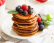 Dividere gli albumi dai tuorli, quindi mescolare insieme gli ingredienti secchi. Far sciogliere il burro in un pentolino, metterlo in una ciotola ed unire il latte. In un'altra ciotola mescolare i tuorli con una frusta manuale, aggiungere lo zucchero, il sale ed il lievito. Unire un po' di latte e la farina gradualmente, quindi aggiungere latte non appena questo verrà assorbito. Mescolare bene con la frusta per evitare la formazione di grumi. Imburrare una padella antiaderente di piccola misura, farla scaldare bene e versare 3 cucchiai di impasto. Fare cuocere fino a quando non si formeranno delle bolle sulla superficie del pancake: girare la frittellina dall'altro lato con una spatola e far cuocere per altri 2-3 minuti.