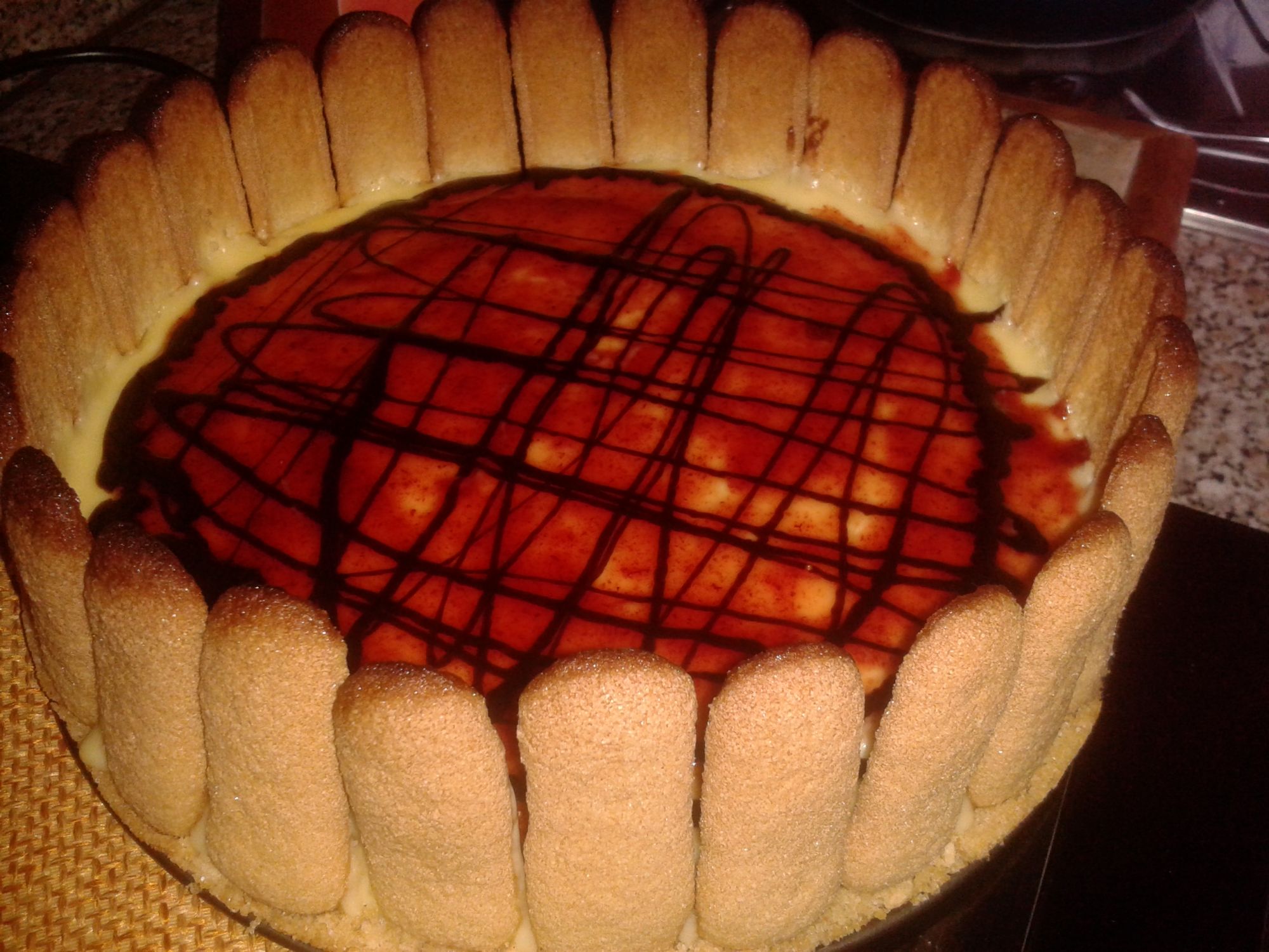 Con gli altri pavesini formare una corona sui lati della tortiera mettendoli in piedi appoggiati al bordo.