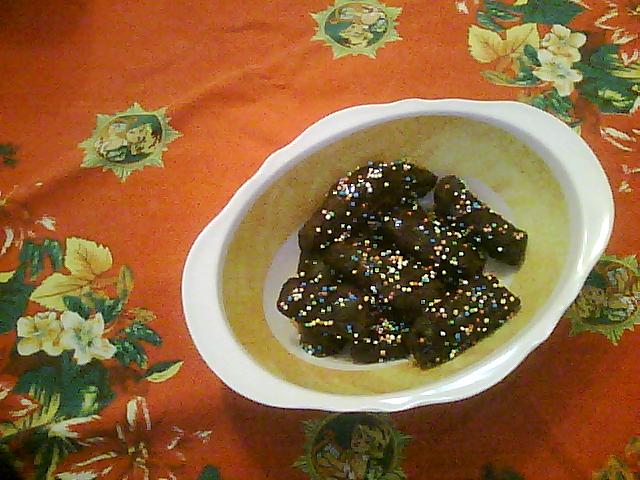 Quando il composto è pronto,colare il tutto con un colino e mettere il liquido ottenuto a bollire in una pentola abbastanza grande e aggiungere poco alla volta e mescolando con un frustino a mano il pepe,la cannella,i chiodi di garofano,la scorza grattugiata di un'arancia,il cacao,il mosto cotto,lo zucchero.