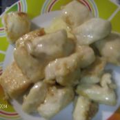 Prendere il petto e tagliarlo a dadini infarinarlo e metterlo in una padella dove è stato sciolto una noce di burro.