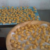Dopo, ho formato tanti salamini che ho tagliato in piccoli pezzi mettendoli in una teglia ben separati tra loro