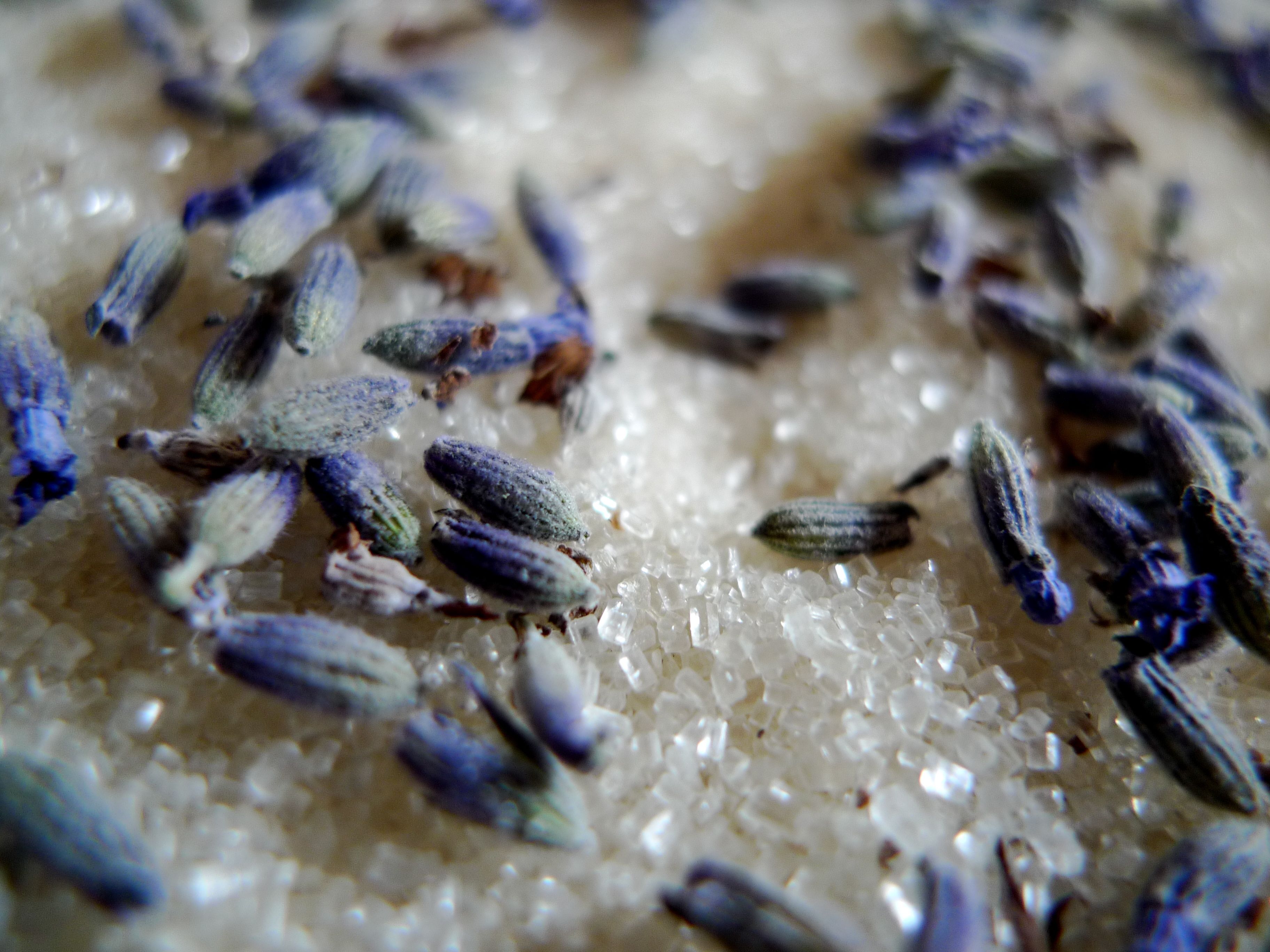 In un mixer mettere lo zucchero e i fiori di lavanda. Tritare per un paio di minuti a bassa velocità. Aggiungere due cucchiai di fiori di lavanda interi e conservare lo zucchero in un contenitore in vetro con chiusura ermetica.