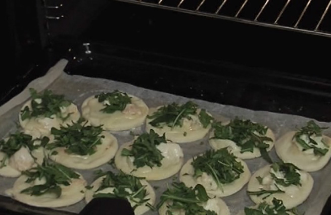 Mescolare l’olio con mezzo bicchiere d’acqua, un pizzico di sale e lo zafferano. Tagliare la rucola a pezzi piccoli e iniziare a lavorare la pasta per pizza. Formare 12 palline e stenderle in dischetti alti circa 3 mm. Ricoprire la teglia con la carta forno, posizionare i dischetti di pizza e spennellarvi sopra il composto di olio e zafferano. Lasciare riposare per circa 10 minuti. Infornare in forno già caldo a 190° per 15 minuti. Una volta pronti i nostri dischetti condirli con qualche cubetto di gorgonzola e la rucola. Infornare per altri 5 minuti. Servire caldi.