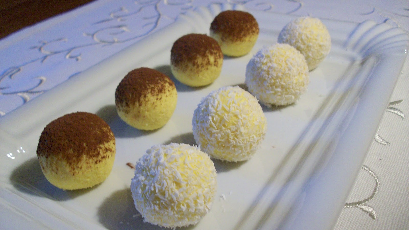 In una terrina amalgamare la ricotta. Aggiungere lo zafferano, lo zucchero e 100 gr di farina di cocco. Mescolare bene il tutto e lasciare riposare il composto in frigo per 1 ora. Passato il tempo di riposo preparare le palline e impanarne alcune nella farina di cocco restante e alcune nel cacao amaro. Servire in un piatto da portata o in pirottini di carta.