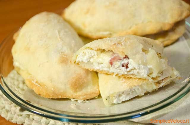In una ciotola schiacciare la ricotta con una forchetta. Unirvi il salame e il provolone precedentemente tagliati a dadini. Salare, pepare e aggiungere i tuorli. Mescolare il tutto con un mestolo di legno. Stendere la pasta, su un piano infarinato, con un mattarello. Formare dei dischetti del diametro di 12-15 centimetri. Riempire i dischetti con un po’ di composto, chiudere i panzerotti con cura, aiutandoci se necessario con i rebbi di una forchetta. Mettere i panzerotti in una teglia rivestita di carta forno e infornare a 250° per 5 minuti. Devono apparire ben dorati.