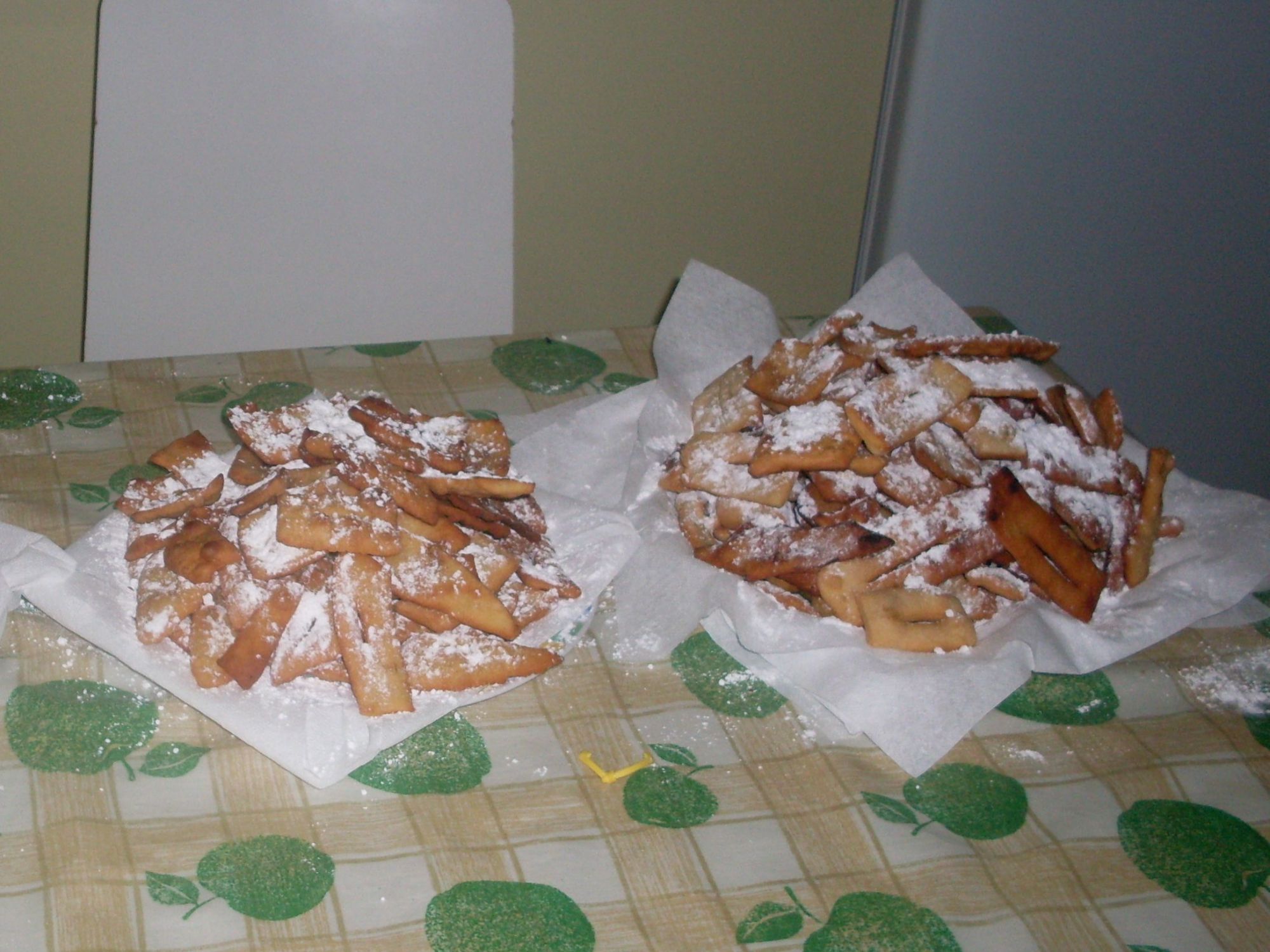 Tipico dolce di carnevale, le chiacchiere che nella mia zona hanno questo nome. Sono molto semplici da fare e veloci. Si possono guarnire in qualsiasi modo anche se il metodo più usato è con lo zucchero a velo.