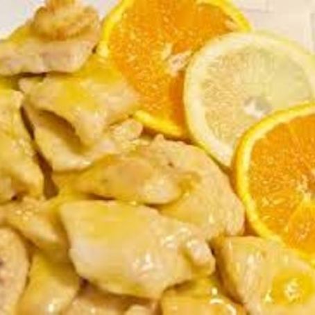 Unire i dadini di pollo infarinati e farli dorare a fuoco vivo. Salare, pepare, unire il succo di agrumi e far cuocere a fuoco basso finché non si sarà ristretto un po’.