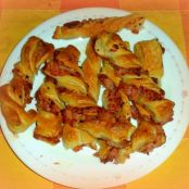 Adagiare i rotolini sulla placca del forno, distanziati l'uno dall'altro. Spennellarli con il tuorlo d'uovo e fare cuocere in forno a 180° per 30 minuti circa.
