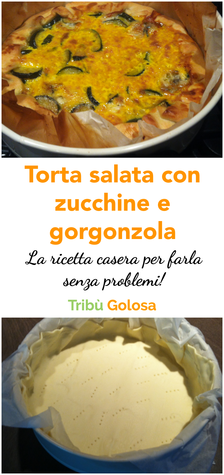 Ora che le zucchine sono pronte le versiamo sopra il gorgonzola e livelliamo. Sistemiamo il bordo e lo schiacciamo un pò con la forchetta.