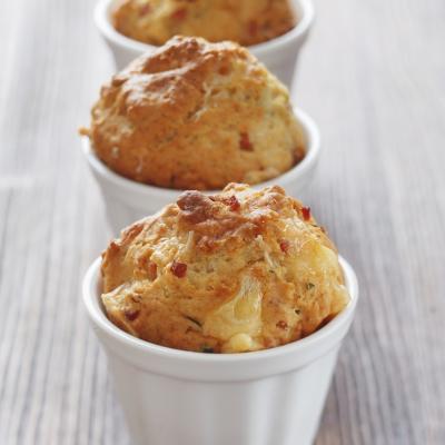 Far fondere il formaggio e il prosciutto cotto al microonde per 1 minuto alla temperatura più alta. Aggiungere la farina e le uova e mescolare bene. Versare la preparazione nei stampini dei muffins (se in silicone é meglio)