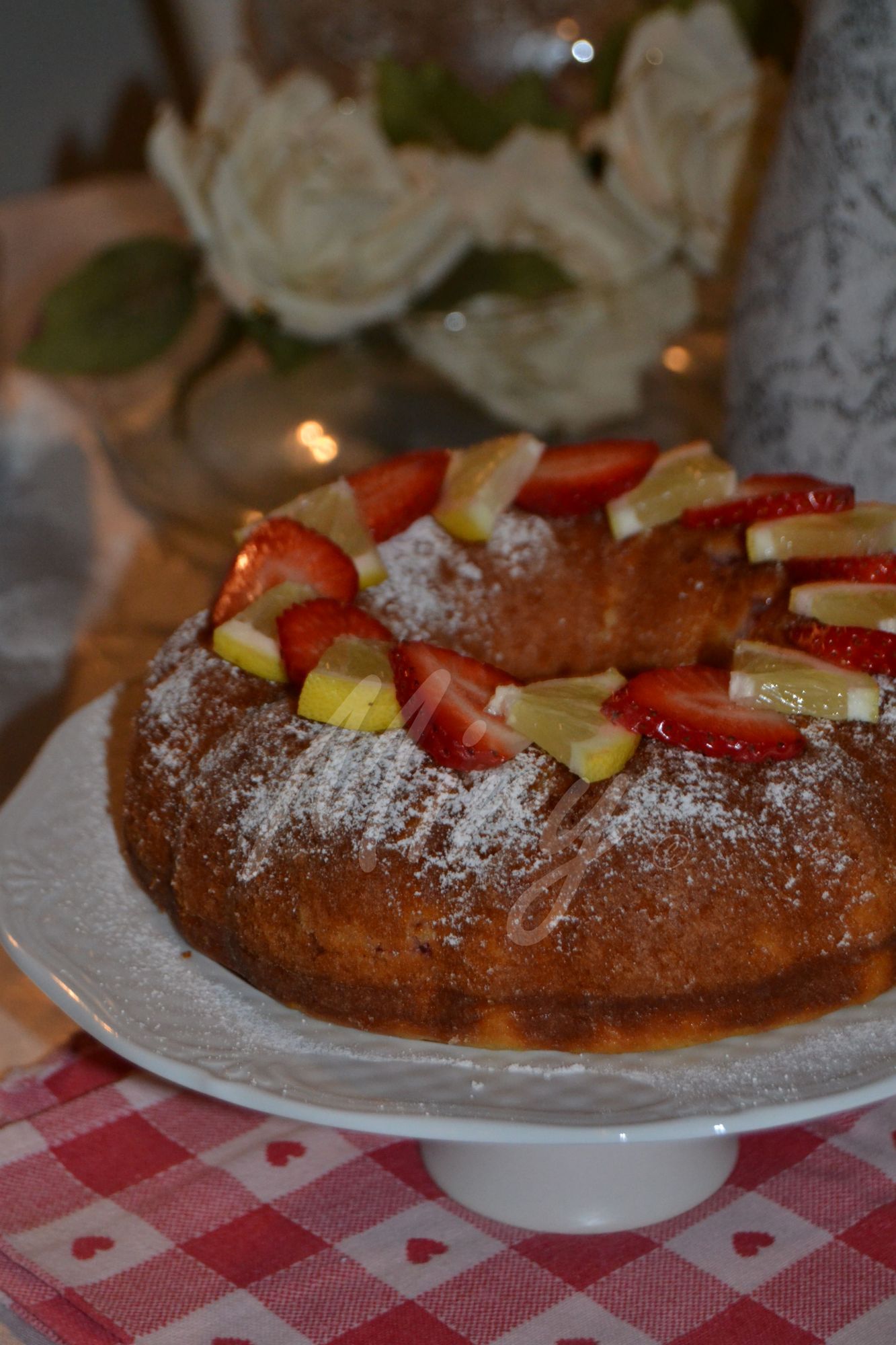 Quando fredda sformare, spolverare con zucchero a velo e guarnire con fragole e limone a fettine.