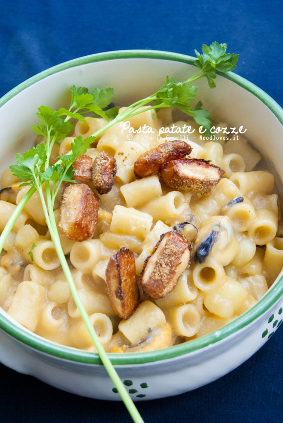Pasta patate e cozze con crosta di parmigiano gratinata