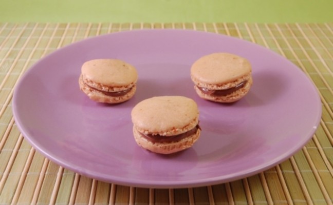 Mettere un cucchiaino di crema al cioccolato in ogni macaron e chiudeteli.