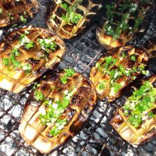 Trascorso il tempo, passiamo fettine di cosciotto nelle restanti erbe aromatiche, premendo bene con le mani, cuociamole sulle normali griglie da gas o barbecue. Durante la cottura rigiriamole qualche volta. Quando i cosciotti saranno cotti al punto giusto da ambedue i lati, disponiamoli su un piatto e serviamo caldi. Accompagniamo i cosciotti con patate al forno, funghi trifolati o carciofi.