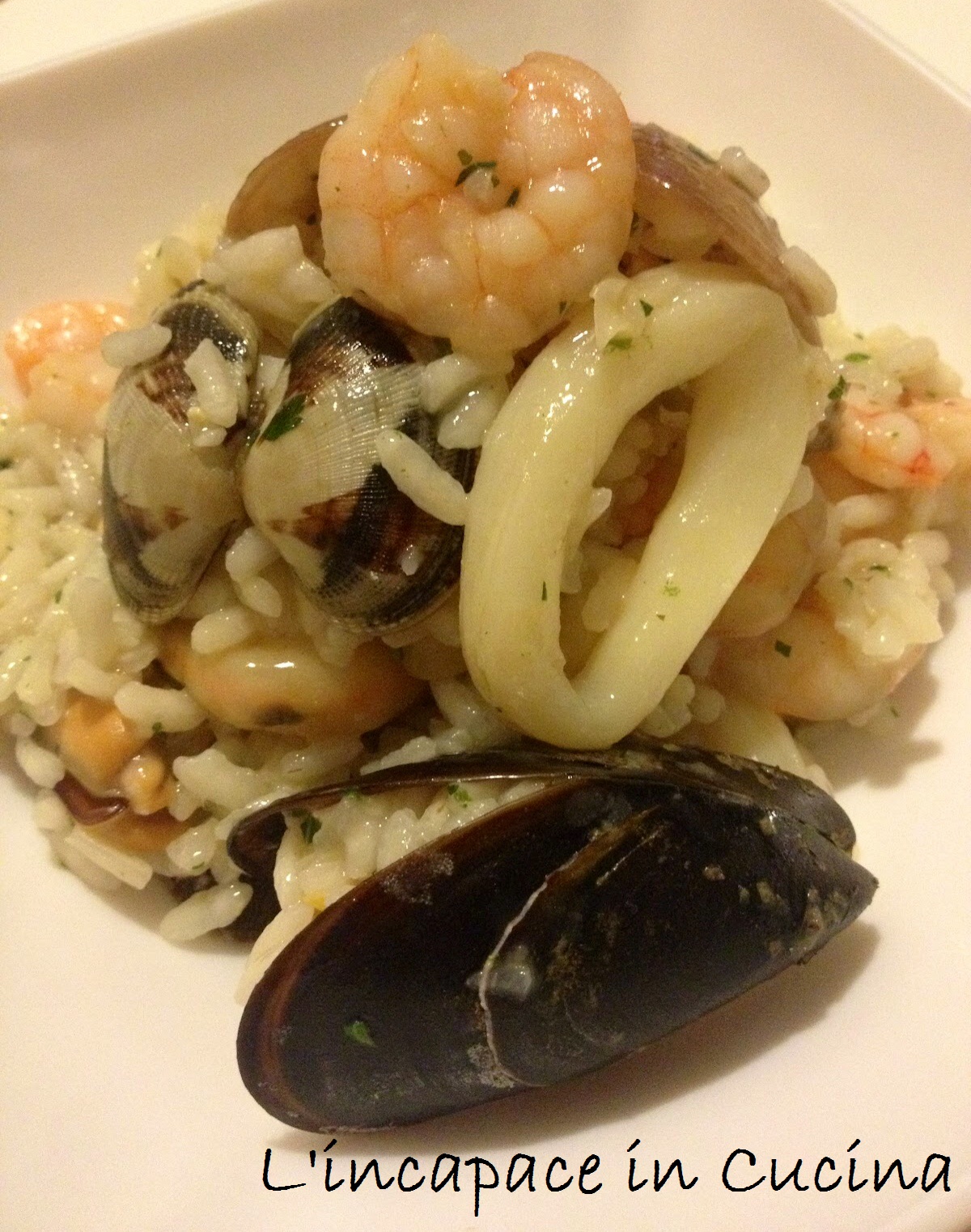 Questo risotto, delicato e caratteristico, è ottimo se preparato con pesce fresco e la scelta può variare in base al vostro gusto o disponibilità.