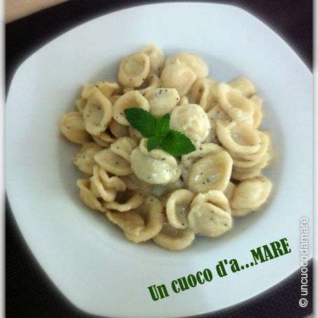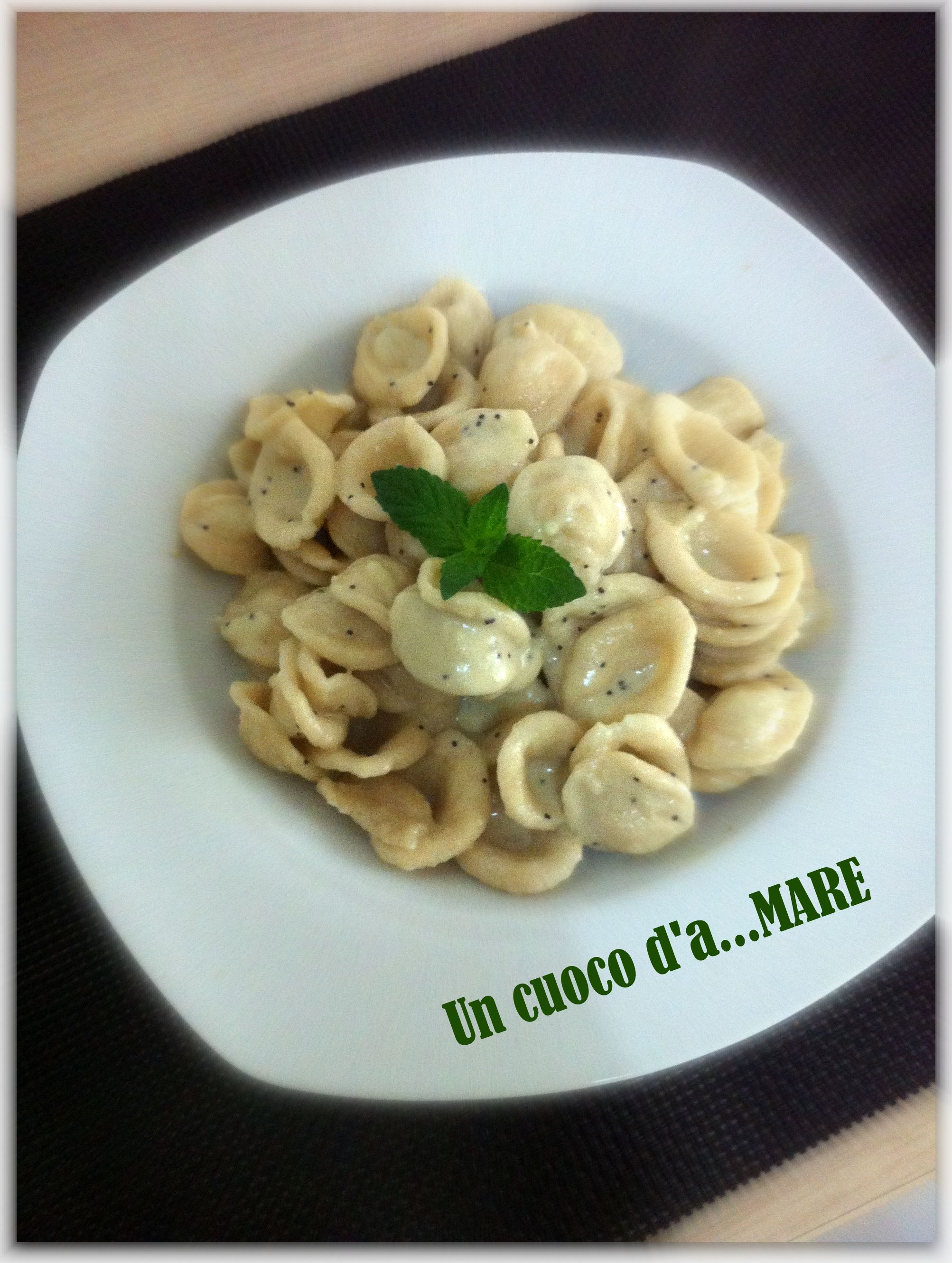 Orecchiette con crema di carciofi, menta e semi di papavero