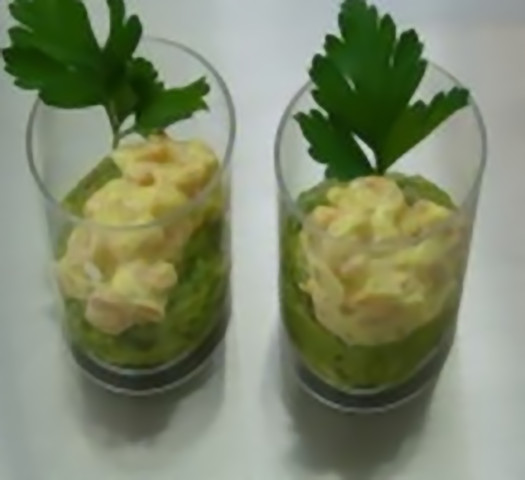 Aggiungere sul fondo di ogni bicchierino il guacamole, seguito dai gamberetti. Conservare in frigorifero e servire fresco!
