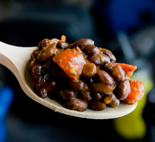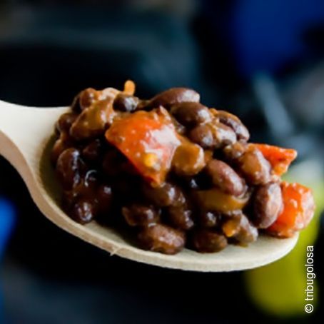 Rosolare nel burro gli spicchi d’aglio, la cipolla, il peperone e il coriandolo tritati. Aggiungere i fagioli con un dado formando una sorta di brodo e cuocere finchè questo non si sarà asciugato.