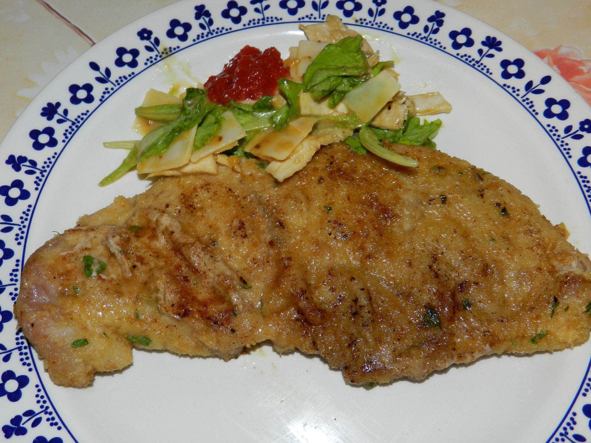 La cotoletta di solito è impanata e fritta. Questa volta, invece, per renderla più leggera, l’ho coperta con una panatura aromatica e cottura alla piastra.