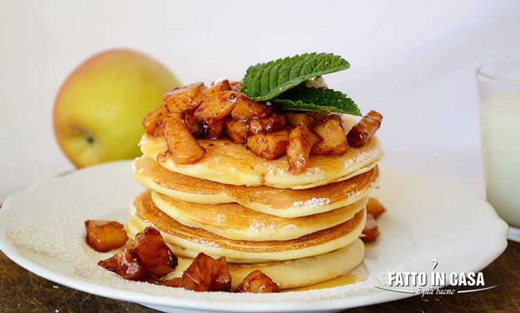Per la nostra ricetta di oggi, abbiamo deciso, invece, di servirli con una crema di mele alla cannella caramellate e una spolverata di zucchero a velo, vi possiamo assicurare che il risultato è stato strepitoso.