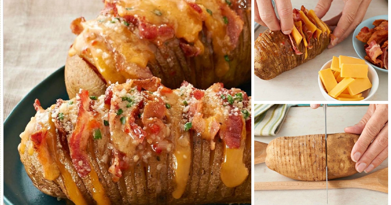 Per prima cosa bisogna incidere la patata con tanti tagli senza mai arrivare fino in fondo, in modo da avere una patata compatta e degli strati da riempire a piacimento.