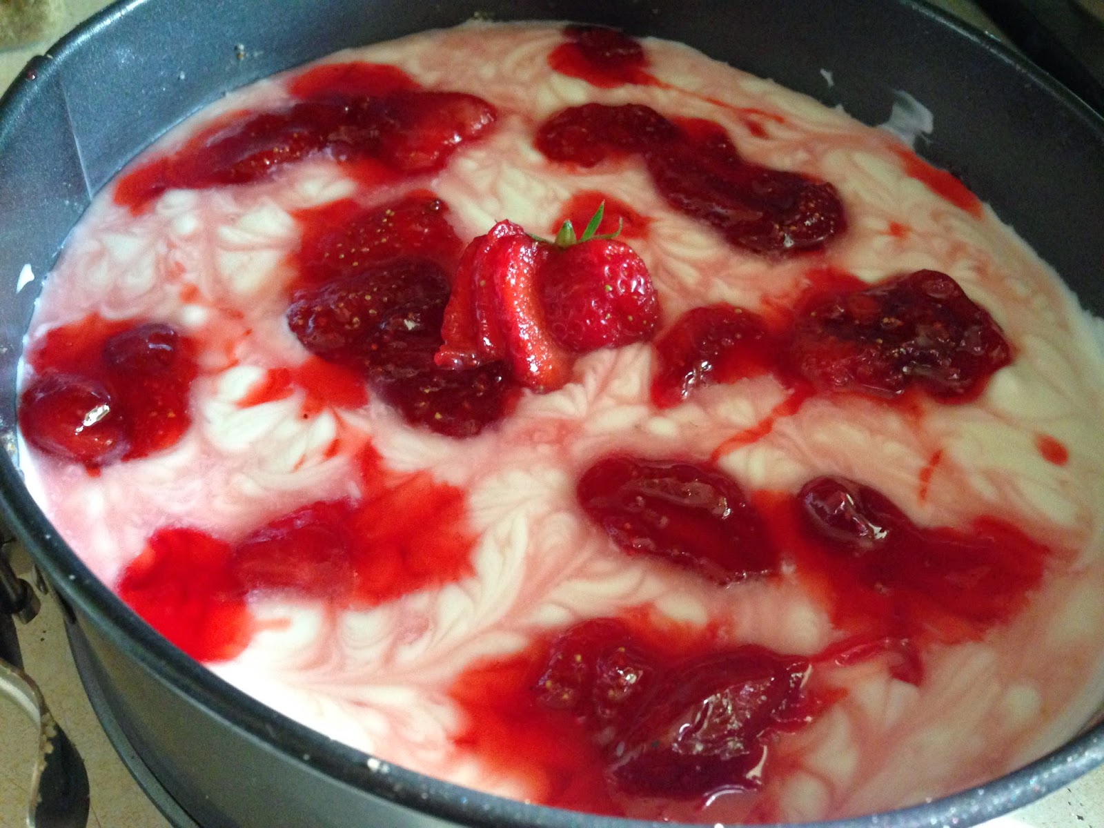 Mettete la crema sulla base e livellatela bene con una spatola. Mettete la torta in frigo.