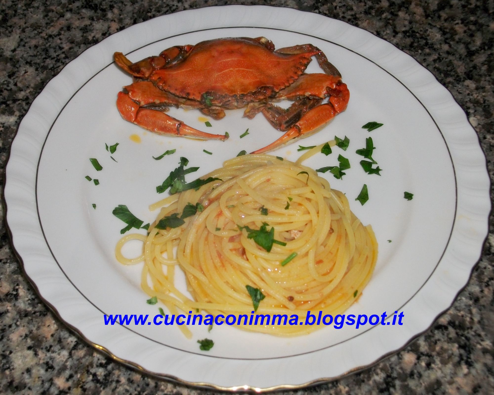 Un primo piatto semplice , ma di sicuro effetto, realizzato con il granchio, qualche pomodorino e spaghetti.