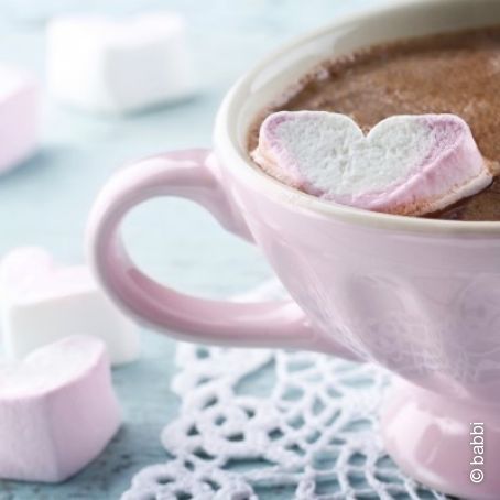 Cioccodelizia in tazza con cuori di Marshmallow, la cioccolata calda ideale per una colazione o una merenda golosa, accompagnata da deliziosi Marshmallow !