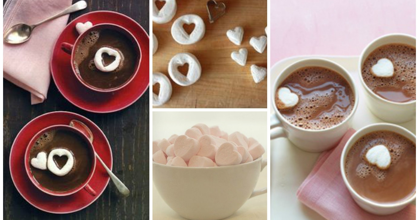 Con delle formine a forma di cuore leggermente oliate, tagliare i marshmallow. Mettere in frigo durante la preparazione della cioccolata calda, in quanto i marshmallow si sciolgono facilmente a temperatura ambiente.