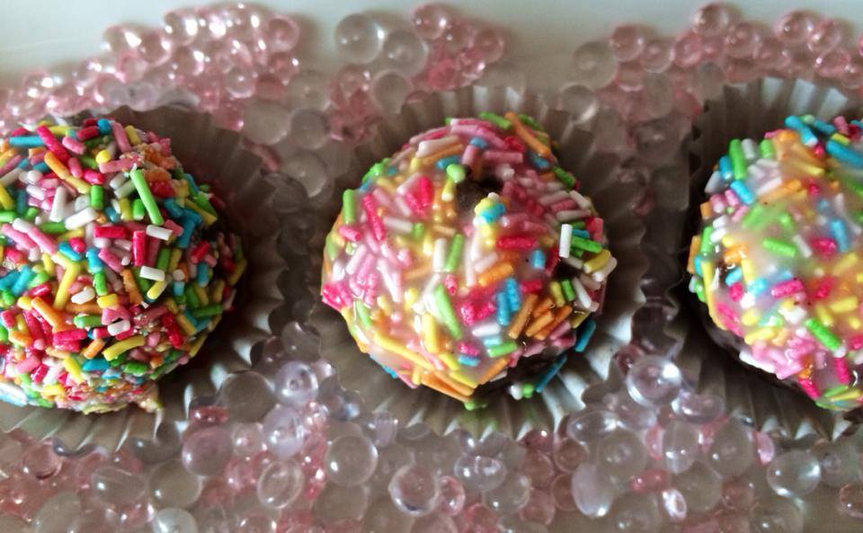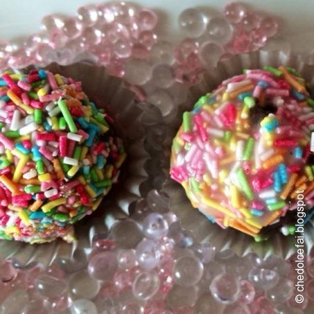 Passato il tempo necessario intingete le palline nella glassa e ricopritele con codette di zucchero.