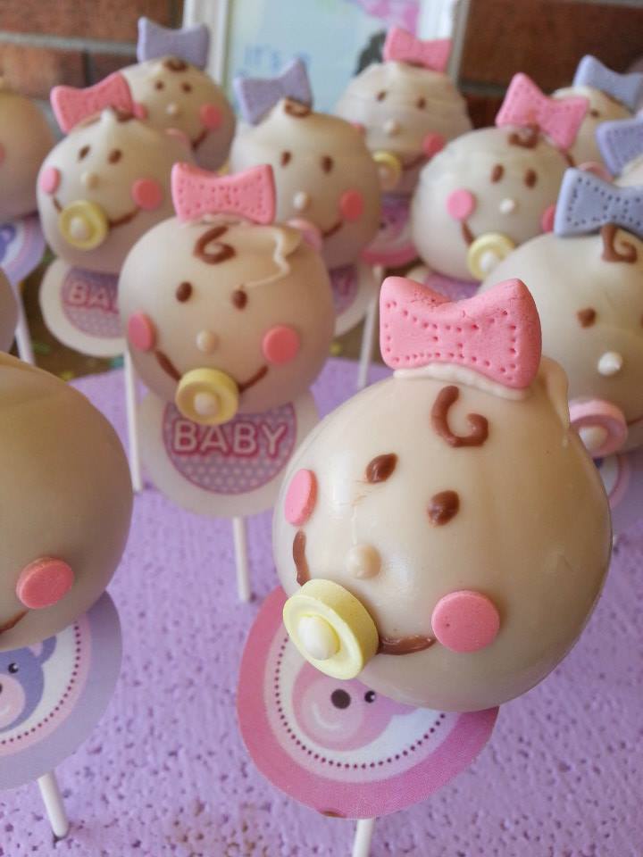 Volendo, potete cospargere la superficie dei cake pops con qualche codetta di zucchero per fare i capelli del bebè.