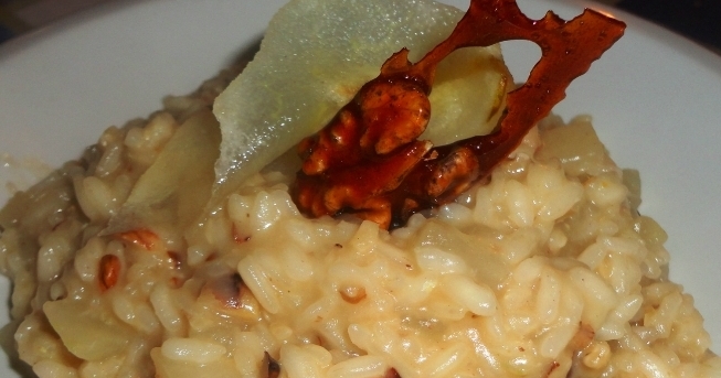 ''Invece di sfumare con il vino si può sfumare il riso anche con un liquore alle pere.''