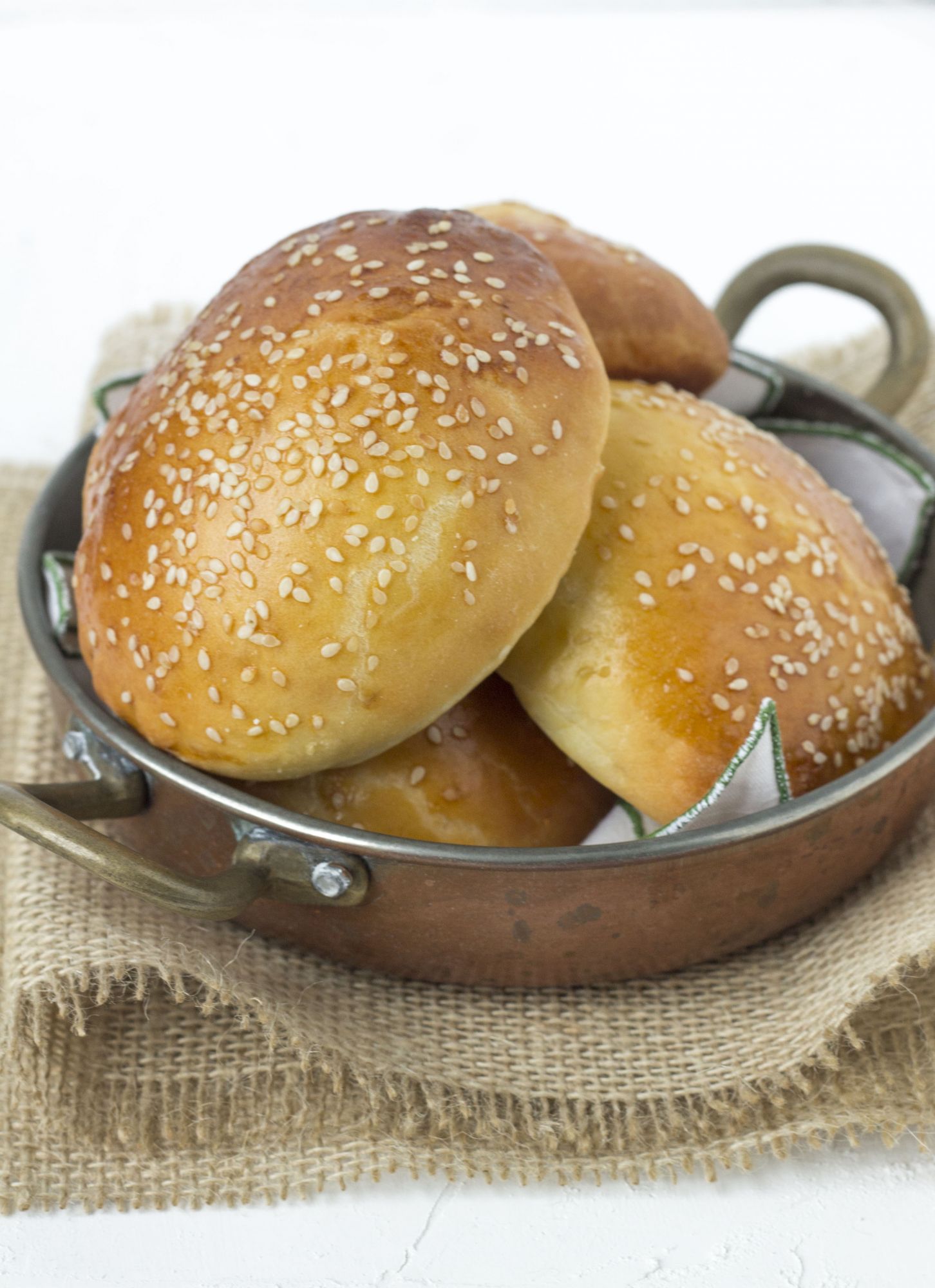 Sbattere l'uovo rimasto con una spruzzata di acqua e spennellare sui panini appena prima della cottura. Cospargere con i semi di sesamo.