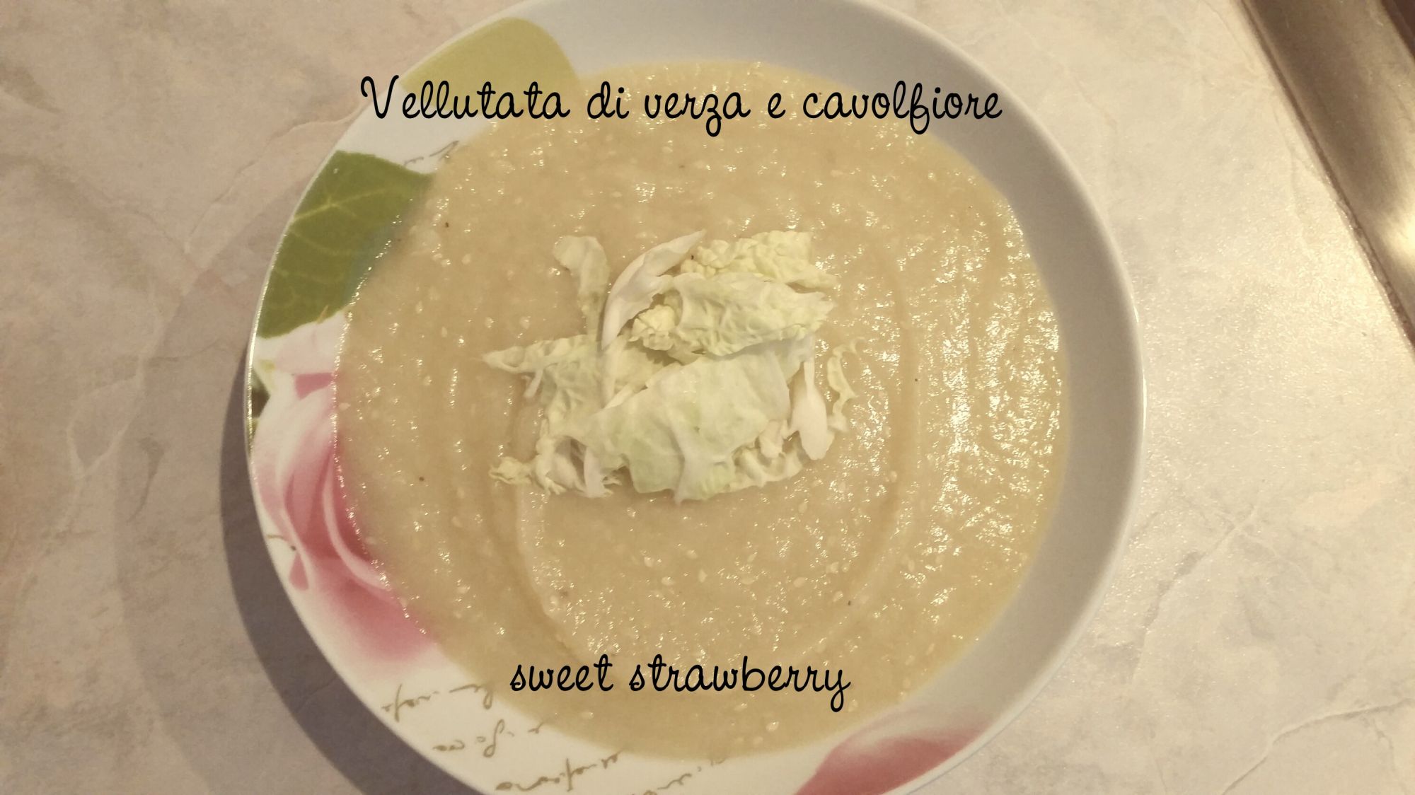 Pulite e lavate sia il cavolfiore che la verza. Metteteli poi a lessare in acqua salata, io ho fatto in pentola a pressione e dal fischio li ho lasciati 15 minuti. In una pentola normale lasciateli per circa 20 minuti dal bollore. Per controllare che sia cotto, provate a infilzare il cavolfiore e sentirne la consistenza. Una volta pronti e scolati (tenete da parte l'acqua di cottura), iniziate a mixare, aggiungendo pepe, sale (assaggiate prima e controllate se effettivamente serve), 2 cucchiai di olio d'oliva, e se non fosse sufficiente anche dell' acqua di cottura, fino ad ottenere la cremosità desiderata. In una piccola padella mettete a tostare velocissimamente i semi di sesamo, giusto per renderli leggermente croccanti. Aggiungeteli alla vellutata e... buon appetito!!:)