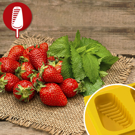 Lavare le fragole, togliere il picciolo poi frullare le fragole con la menta. Aggiungere lo zucchero poco a poco, poi lasciar raffreddare.