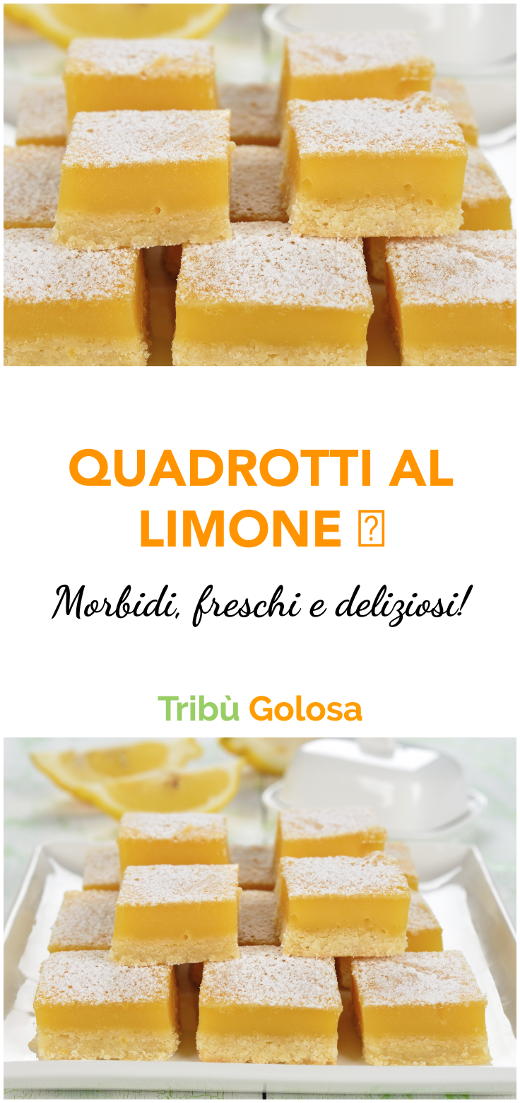 Deliziosi quadrotti al limone, semplici da realizzare. Da servire su un piatto blu o nero per far risaltare il colore del limone, i vostri ospiti resteranno senza parole...