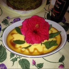 Mescolare le uova con lo zucchero per circa 5 minuti con un frullino elettrico, fino a quando il composto è bianco e spumoso. Aggiungere l'olio e il latte a filo per evitare le uova perdano di volume. Aggiungere il crème caramel in polvere. Aggiungere la farina e il lievito secco, setacciati. Poi unire tutti gli ingredienti.