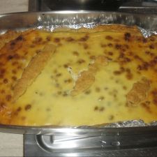Tagliate il pane a cubetti, mettete sulla placca del forno ed infornate per 5 minuti a 180°. Schiacciate le banane in una ciotola ed unite le uova sbattute. Mescolate ed unite il latte, la cannella e la vaniglia alla crema. Unite i pezzi di pezzi di pane tostato, le gocce di cioccolato e mescolate bene.