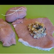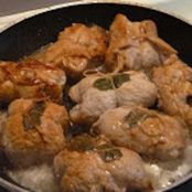Battete le fette di carne e posizionate su ciascuna un po' di ripieno. Richiudete la carne a fagottino e legatela con dello spago da cucina, inserendo una foglia di salvia.
