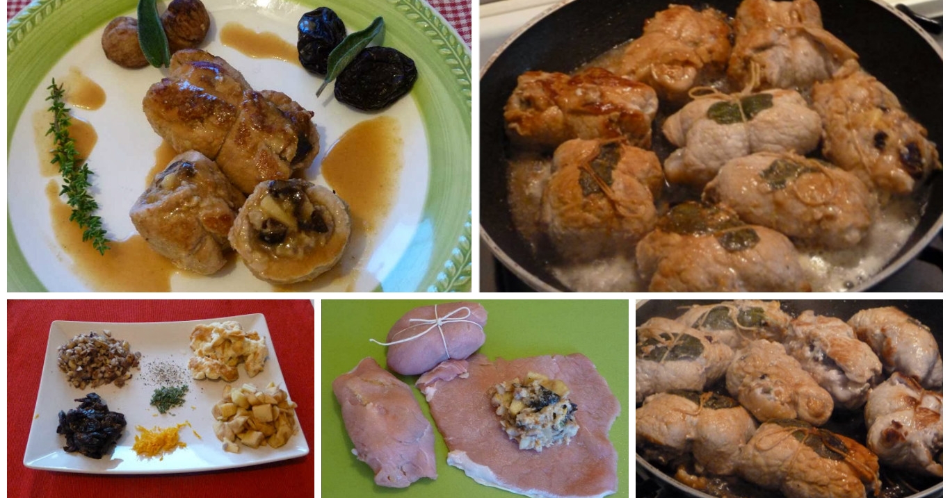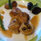 Castagne, mela, prugne, maiale. Ecco il mix per un saporito arrosto da portare in tavola una domenica di dicembre. Ma anche un lunedì, un martedì.... tutti i giorni! Normalmente un arrosto si fa con un grosso pezzo di carne; potete farlo: lo aprite, lo farcite e lo legate. Naturalmente dovete allungare i tempi di cottura. Oltre alla lonza potete usare anche del vitello, del pollo o tacchino. Noi abbiamo scelto piccole porzioni perché sono veloci da preparare e da cuocere. Provateli questi arrostini: sono un portento di sapore agrodolce. In accompagnamento ci sta benissimo un buon puré di patate.