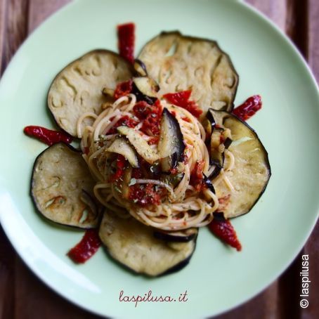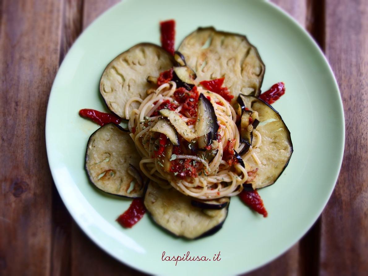 Scolate la pasta condite col pesto e le melanzane, e il vostro pranzo è salvo