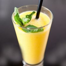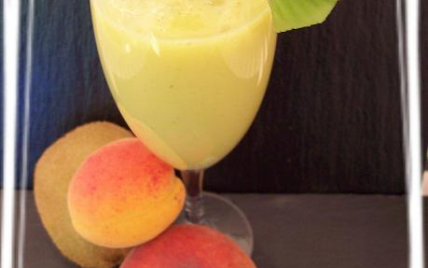 Versare in un bel bicchiere, decorare con delle rondelle di frutta.