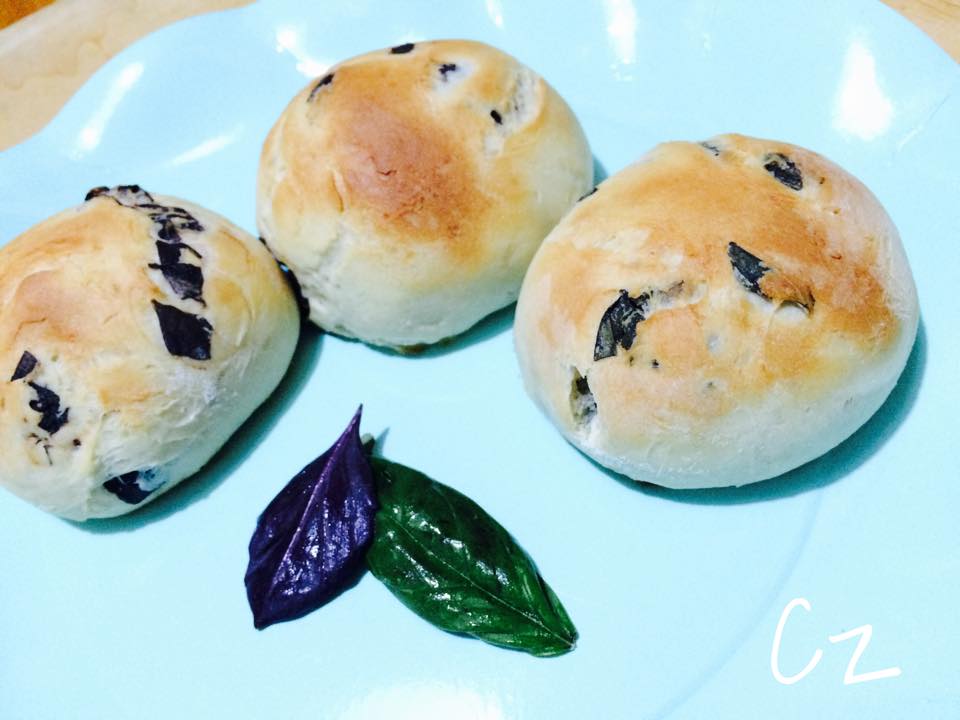 I vostri panini al basilico sono pronti. Basterà riscaldare il forno statico a 200°, spennellare di olio d’oliva (o di latte, se preferite una crosticina più croccante) e infornare.