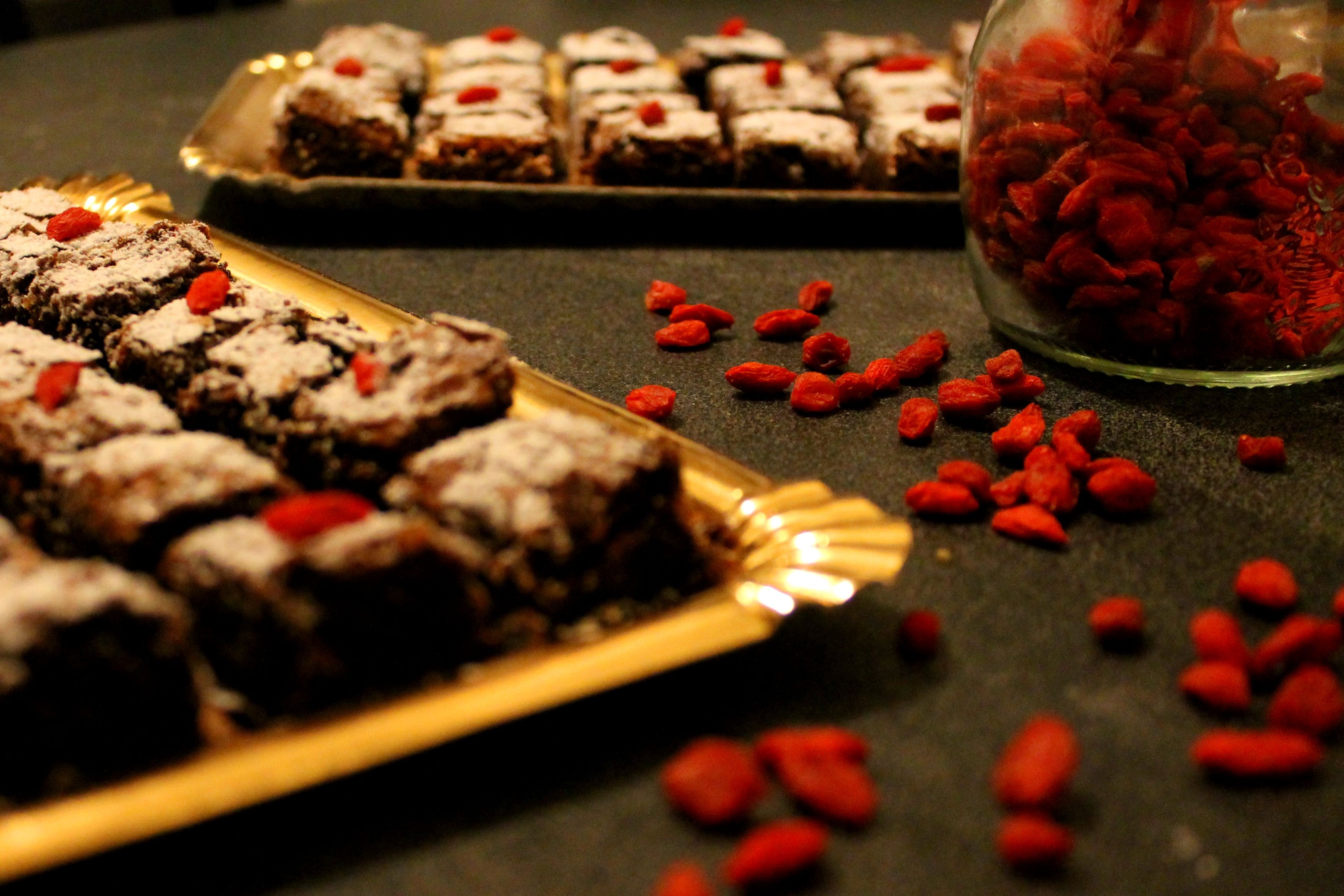 La decorazione è stata fatta utilizzando bacce di goji secche.