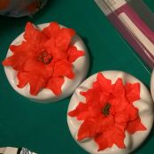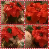 Preparare le varie parti del fiore: le foglie verdi, i petali rossi e i pistilli e lasciar in posa un'intera giornata. (le foglie verrenno fatte asciugare separatamente, mentre per la Stella man mano che si dispongono i petali rossi nell'apposito controstampo, unirli con un poco di colla e formare il fiore completo dei pistilli)